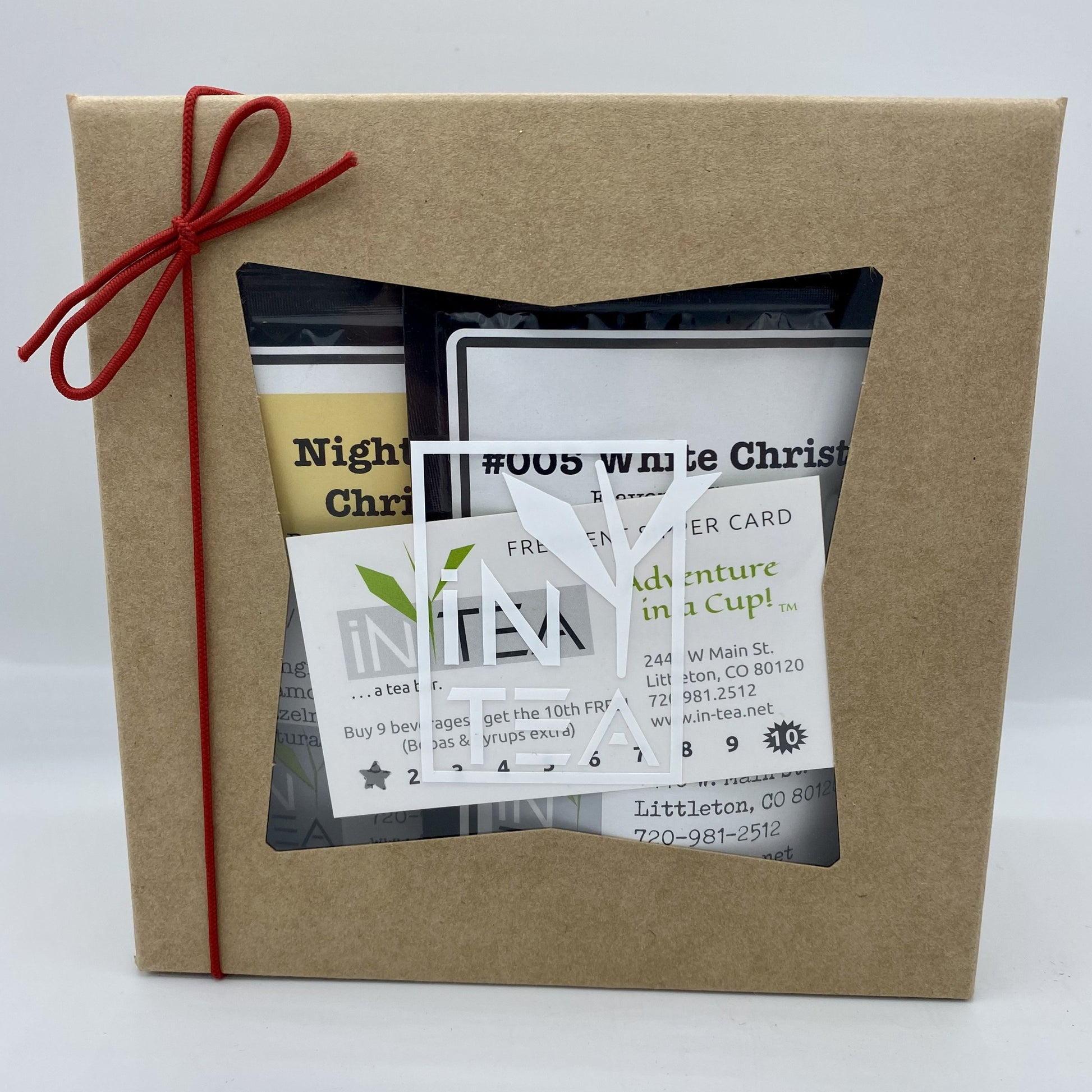 4 servings of each of the following tea: Night before Christmas, Cinnamon Orange Spice, Winter Mint, Spiced Apple Pie, & Cranberry Coconut.